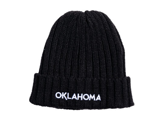 Oklahoma Wordmark Sustainable Cable Knit Beanie